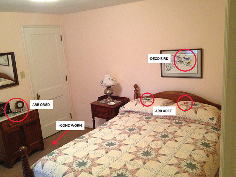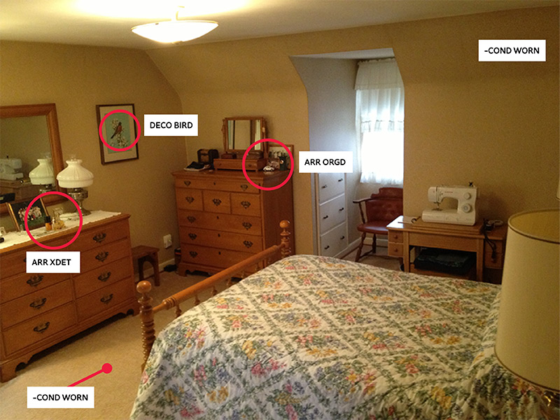 The images below are from a home in Oxford. The homeowners gave researchers permission to take photos in their homes to document their contents. When analyzing images, develop codes that create “handles” for observed content. Here’s this process in action: