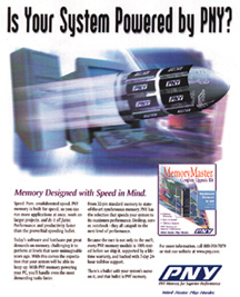Magazine ad for PNY Memory, 1997.